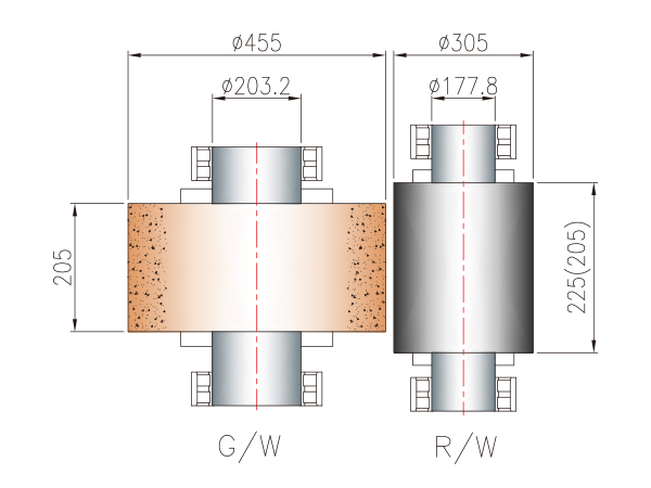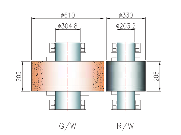| Regulating wheel | O.D x Width x I.D | Ø305 x 150 x Ø177.8mm | Ø305 x 205 x Ø177.8mm | |
